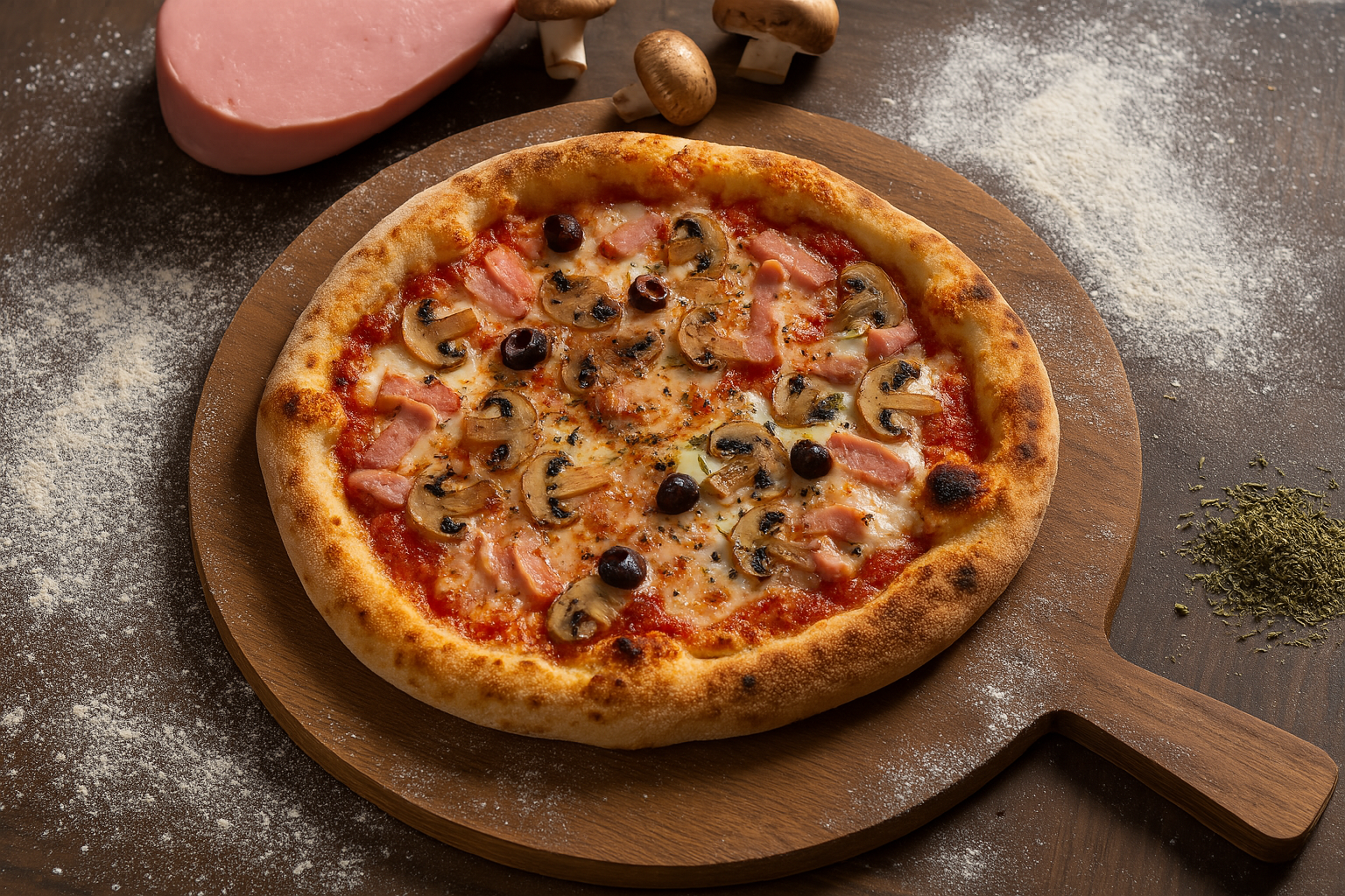 Pas besoin de couronne pour briller ! La Reine du Parc, c’est la pizza de ceux qui veulent une valeur sûr : crème ou tomate, mozza qui file, jambon supérieur, champignons poêlés, olives Kalamata pour le peps, et origan pour finir en beauté.