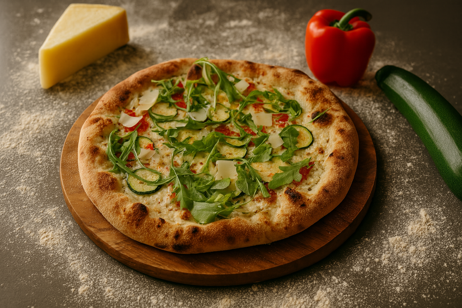 Chaque saison a sa Vivaldi. L’été ? C’est le soleil dans l’assiette : crème onctueuse, mozza généreuse, courgettes marinées comme dans le Sud, poivrons grillés, ricotta fondante et roquette pour la touche fraîche.